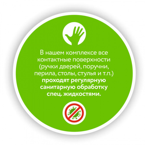 Профессиональные клининговые компании обрабатывают дезинфицирующими средствами с моющим эффектом Blutoxol (производство Германия), Аламинол и DESO (производство Российская Федерация) ручки дверей, перила, поручни эскалаторов и прочие горизонтальные поверхности. Особое внимание уделяется дезинфекции столов и стульев на фудкортах.